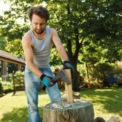 Deze bijl is geschikt voor zware hakwerkzaamheden. De bijl weegt 2000gram, en is voorzien van een gewaxte essenhouten steel. Om met een bijl te kunnen werken moet u de juiste zwaai te pakken krijgen. Zak enigszins door uw knieën en zwaai de bijl in een grote en krachtige boog over uw hoofd. Als u een stuk stam voor u heeft staan, mik dan op de onderrand, het deel dat het dichtst bij u knieën ligt en niet op de bovenrand. Houdt de zwaai nooit in als u een stuk hout bereikt, maar probeer er doorheen te slaan. Uiteraard moet het stuk hout dan op een stevig hakblok liggen. Let op dat u de bijl niet te vaak in de grond slaat, want dit zorgt ervoor dat de snede van de bijl snel bot wordt.